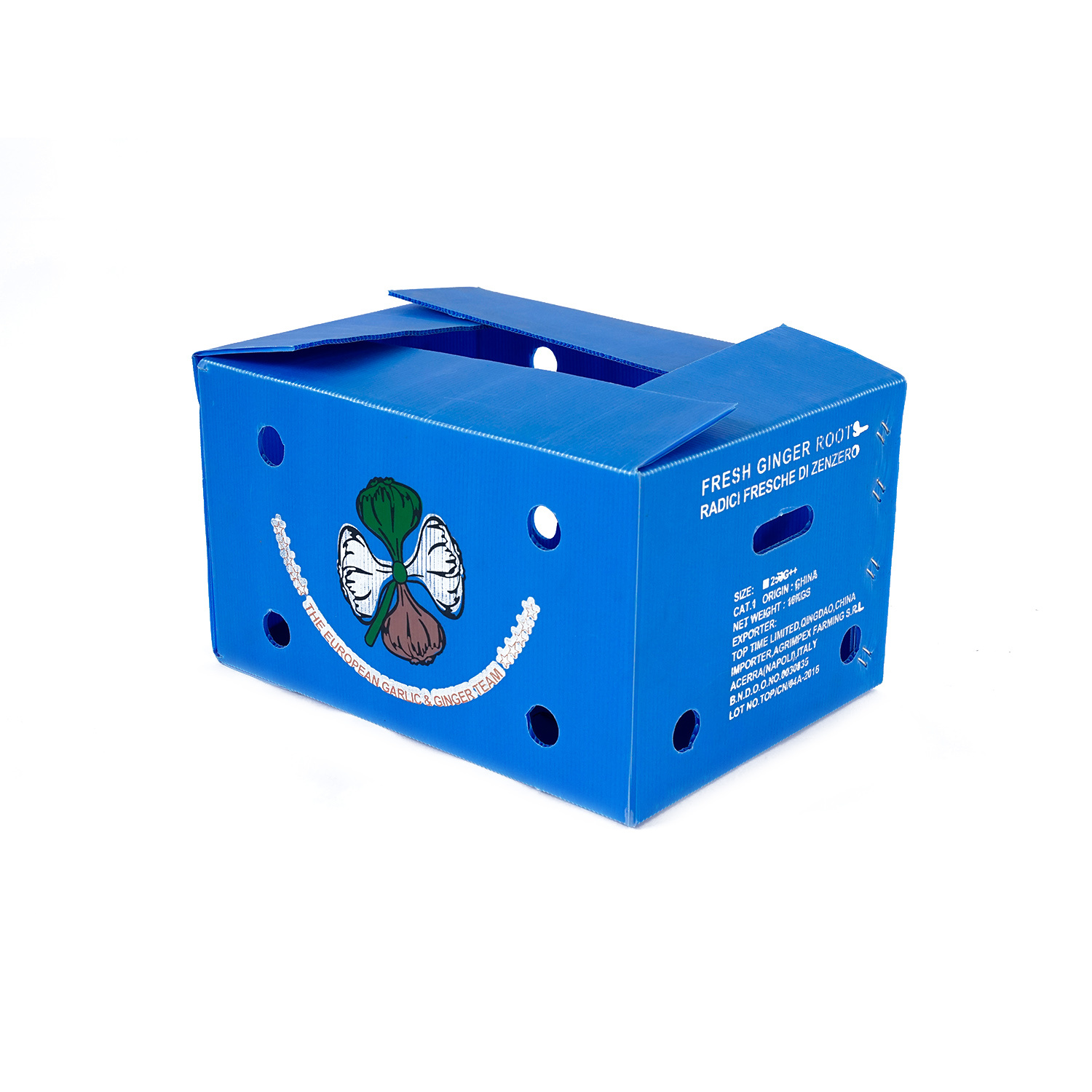 中空板蔬菜箱其主要成分為聚丙烯(PP)或聚乙烯(PE)。它質量輕、強度高、無毒無污染、防水防潮、耐腐蝕、顏色豐富、易印刷、可回收,具有良好的環保性能和二次加工性能。特點:
